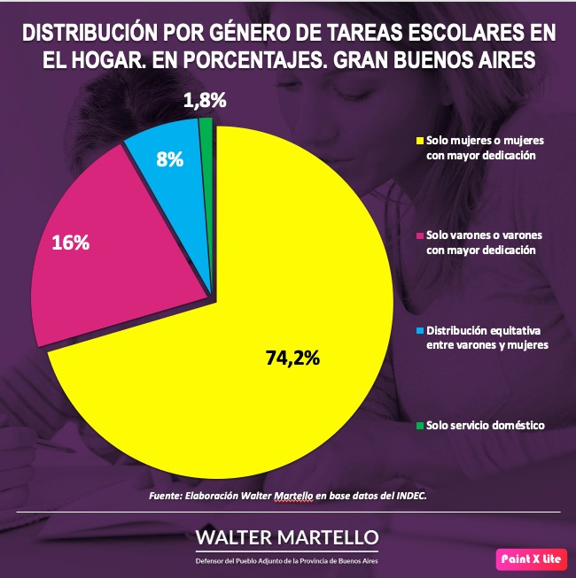 Al analizar la distribución de tareas escolares y de cuidado, se detectaron desigualdades aún más profundas dado que la equidad solo se registró en el 8% y 7% respectivamente.